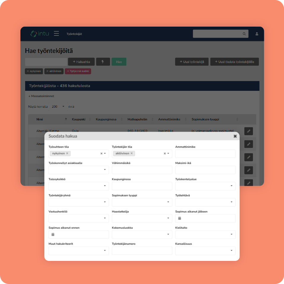 Henkilöstövuokrauksessa työvoimatarpeet voivat muuttua tunneissa, ja viestintä eri kanavissa kuormittaa sekä koordinaattoria että kenttää. Intu kokoaa prosessin yhteen näkymään – nopeuttaen reagointia, vähentäen kaaosta ja vapauttaen aikaa olennaiseen.