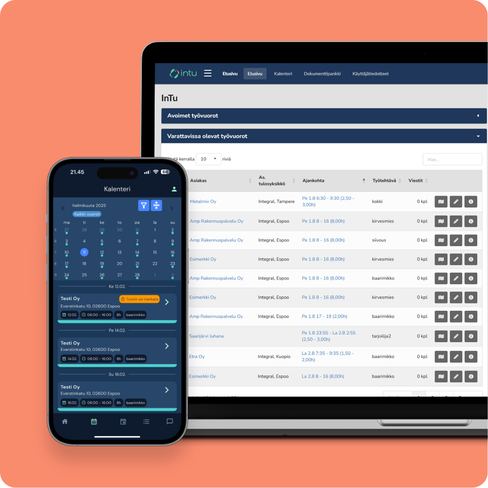En tiedä, miten selvisimme aiemmin ilman Intua. Intu toi kaiken tarvittavan yhteen järjestelmään – työvuorot, viestinnän ja hallinnon. Parasta on, että ohjelmistoa kehitetään aidosti asiakkaiden tarpeista käsin.